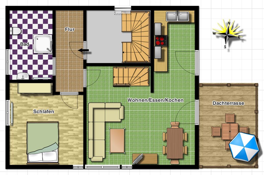 - möblierte Dachterrasse 13 m² mit Blick auf die Ostsee
