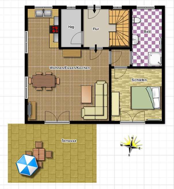 - Wohnzimmer (Sat-TV, DVD-Player, Radio, Eckcouch)