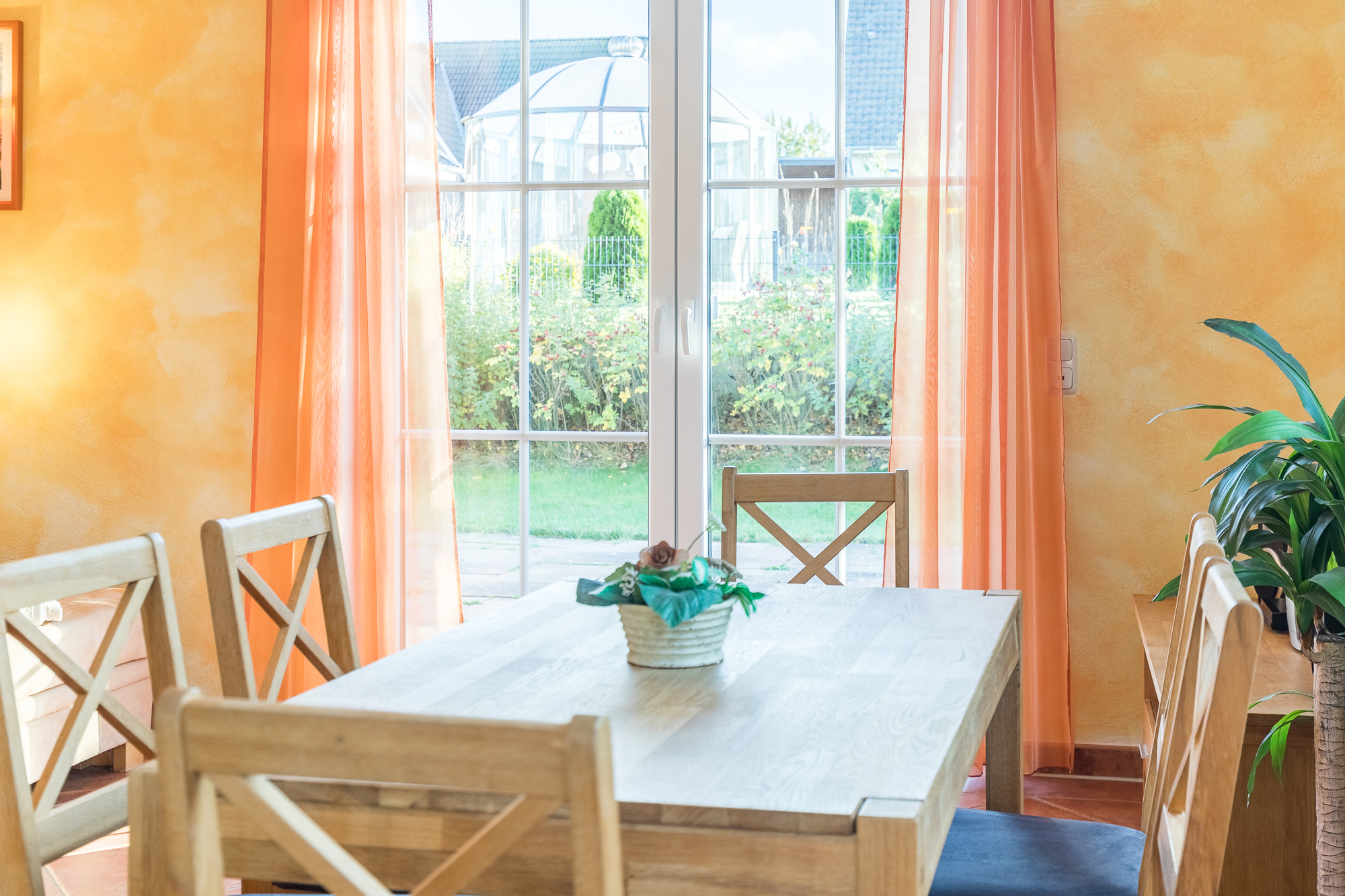 - Wohnküche (Esstisch, Backofen, Geschirrspülmaschine, Kaffee-Pad-Automat)