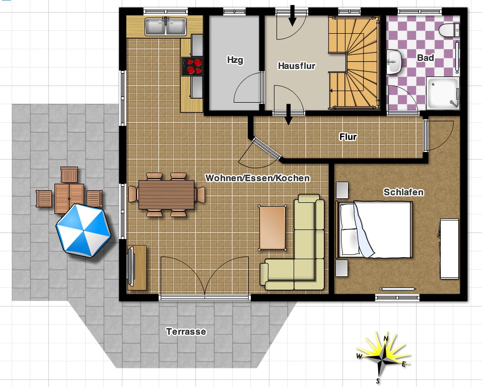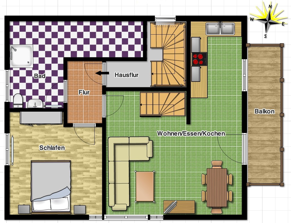 - Wohnzimmer (Sat-TV, DVD-Player, Radio, Eckcouch)