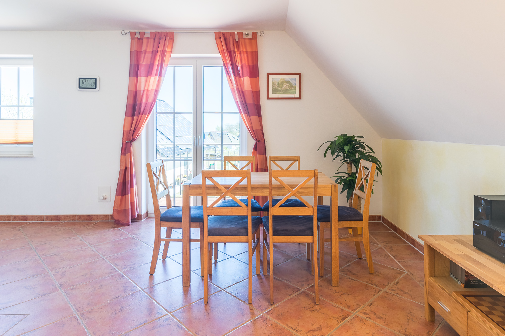 - Wohnküche (Esstisch, Backofen, Geschirrspülmaschine, Kaffeemaschine)